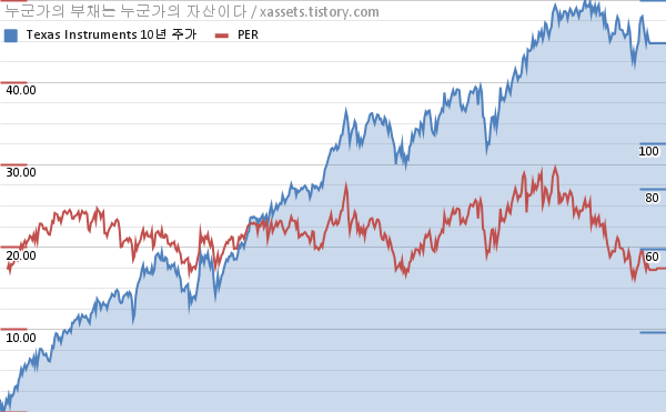 텍사스 인스트루먼트 PER 차트 (2012년~2022년)