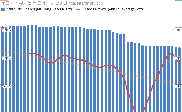 스타벅스 자사주 매입 차트 (2010년~2022년)