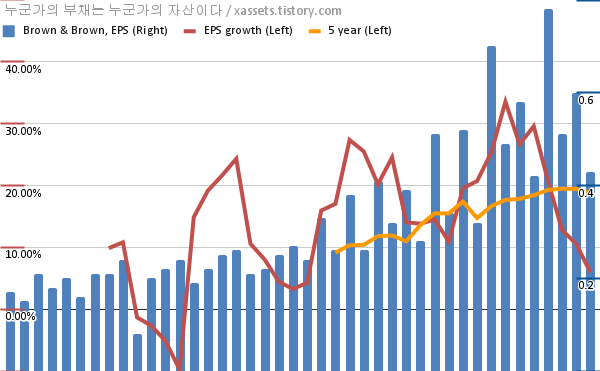 - 포스팅일 기준, 브라운 앤 브라운의 1, 5년 연평균 EPS 성장률은 5.94%, 18.81%이다.