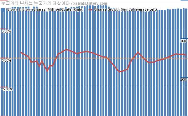 브라운 앤 브라운 자사주 매입 차트 (2005년~2022년)
