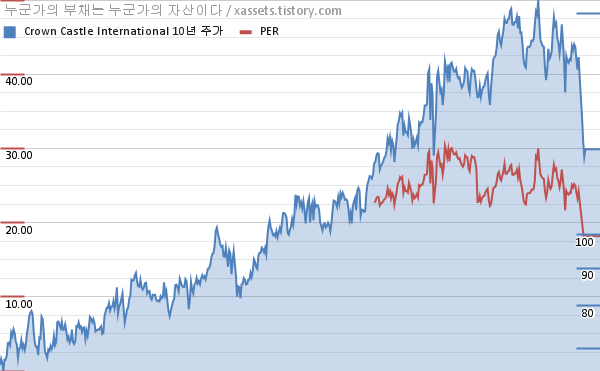 크라운캐슬 인터내셔널 PER 차트 (2012년~2022년)